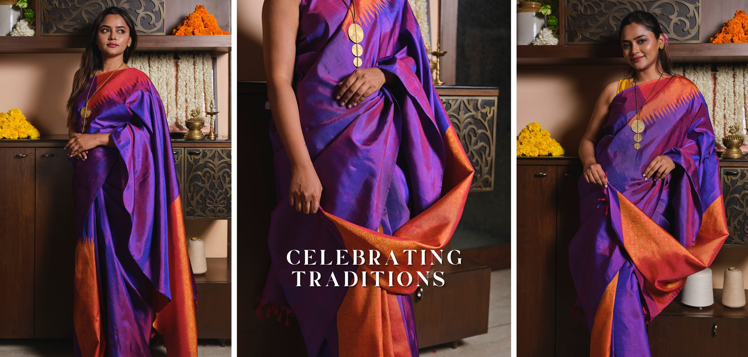 Imagine draping a saree that carries a legacy. At Dakshinam, every saree tells a story- woven by skilled hands, nurtured by tradition, and made with love. We collaborate with incredibly skilled master weavers across India bringing their labour of love straight to you. Our mission is simple: to keep the magic of Indian weaving traditions alive, one saree at a time. Remember how your grandmother once knew exactly where to go for that perfect saree- straight to the source? That’s the connection we’re bringing back. With reverence for tradition and a love for craft, we take pride in bringing you these elegant handloom sarees.