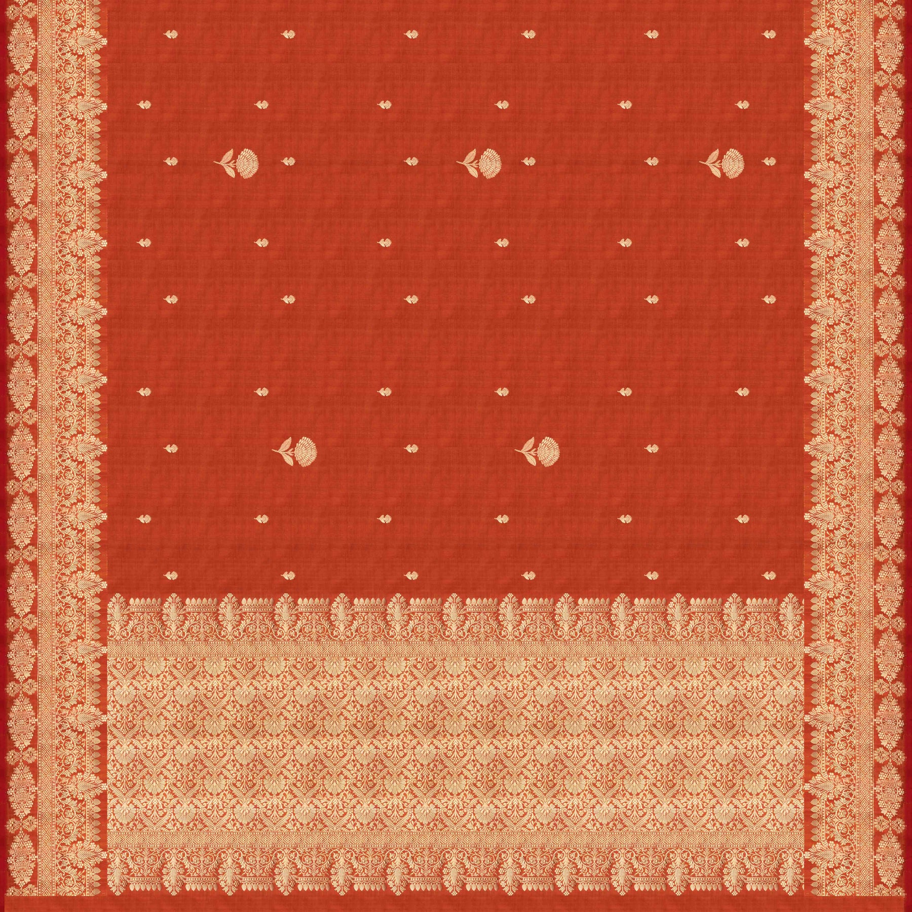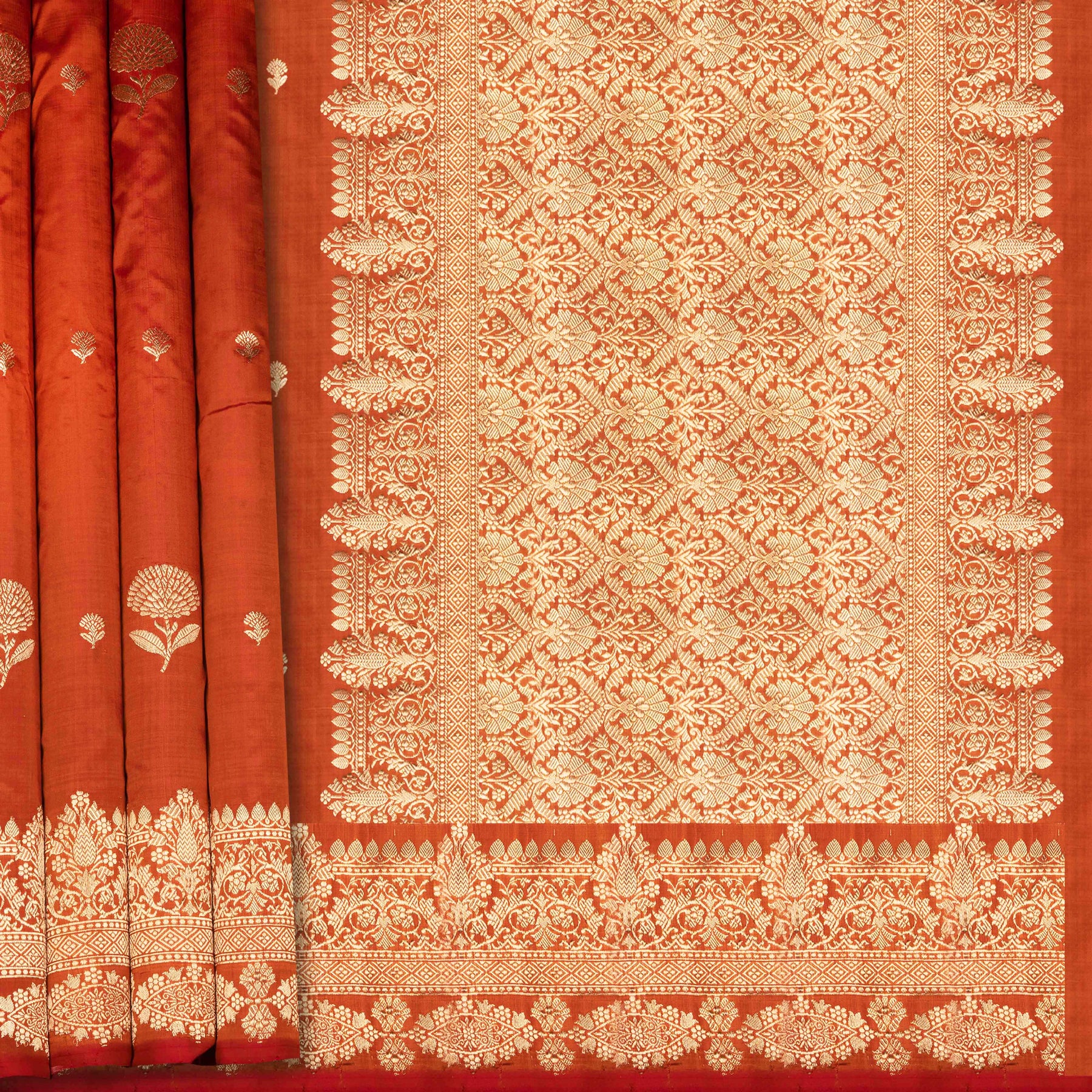 Handwoven Orange color Mubarakpur Banarasi silk Saree- 3287T015857DSC