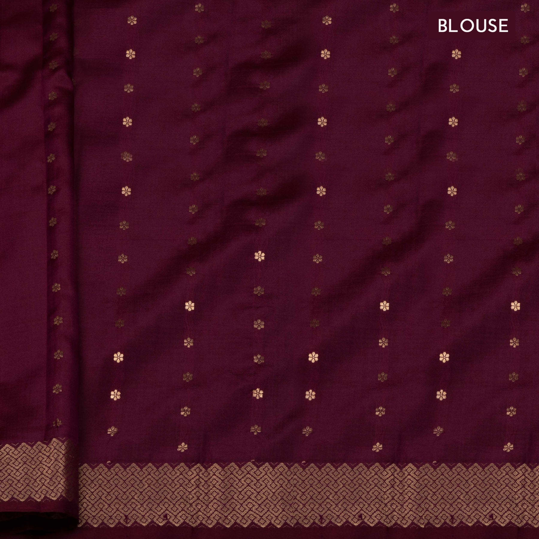 Blouse: Wine blouse with lines of floral buttas and matching zari border