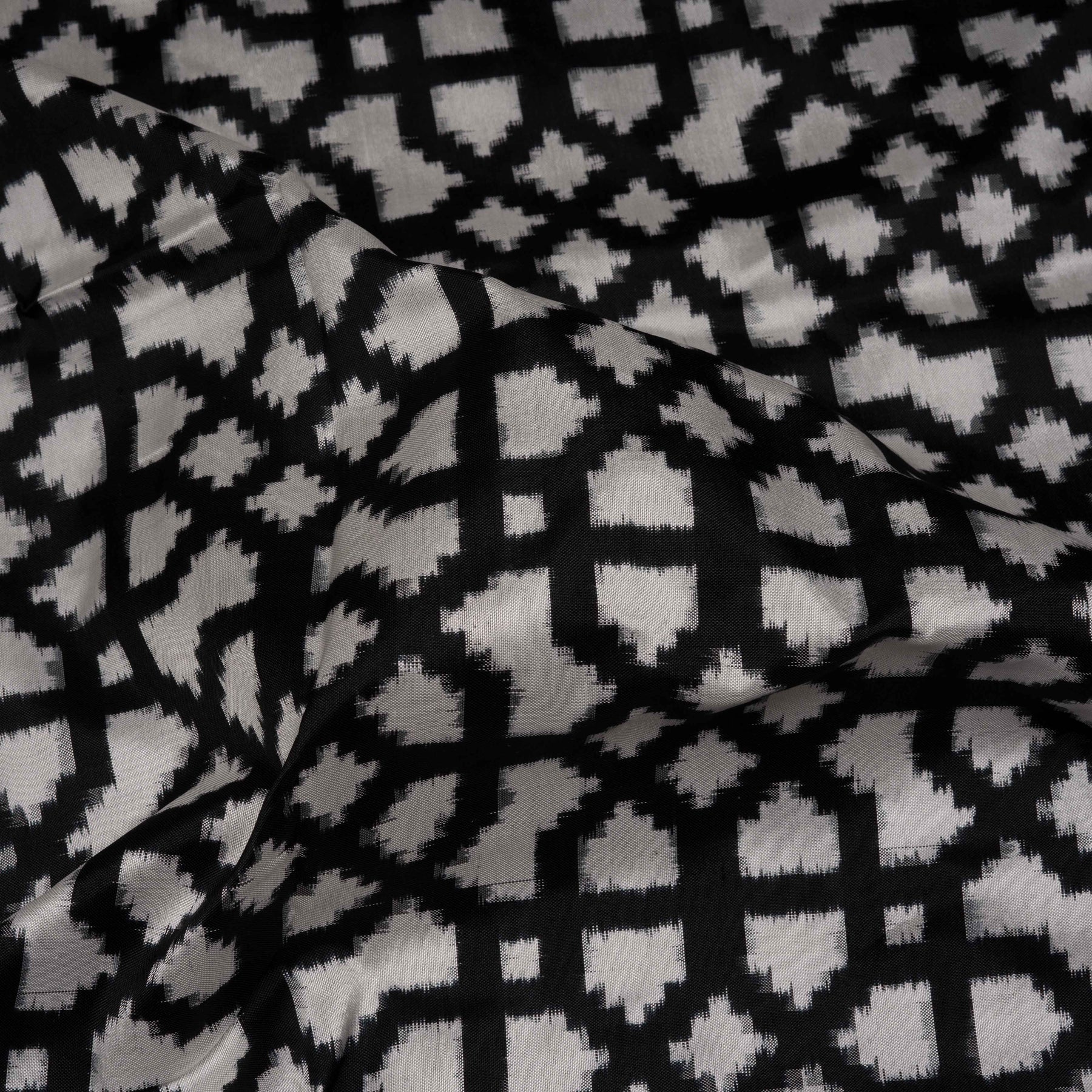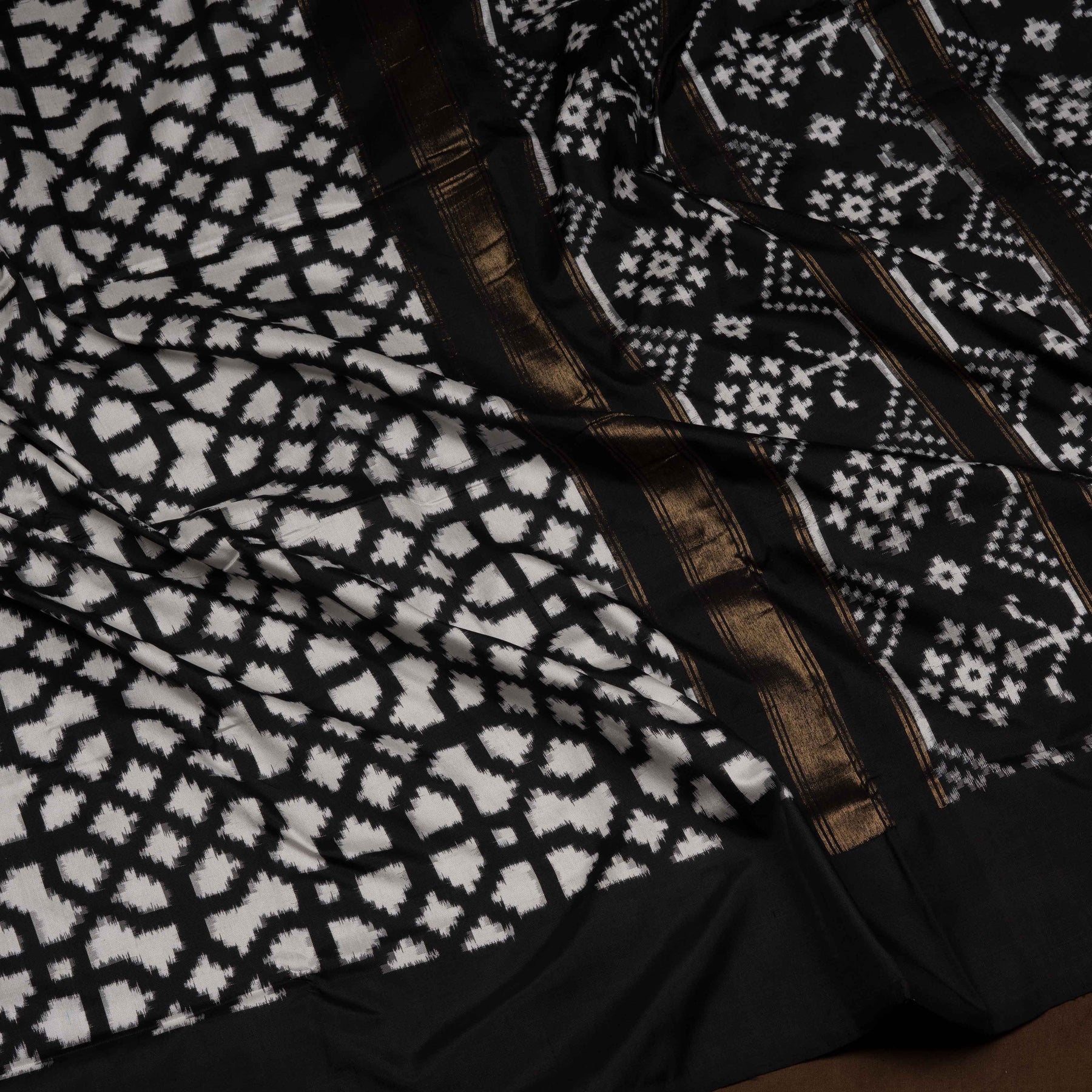 Handwoven Black with white Double Ikat silk Saree- 3292T015879DSC