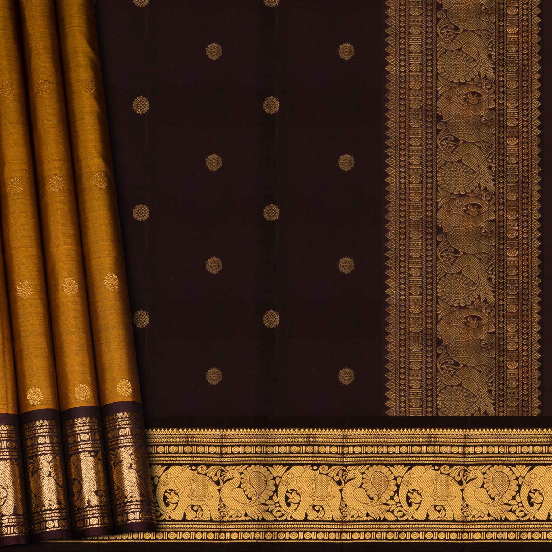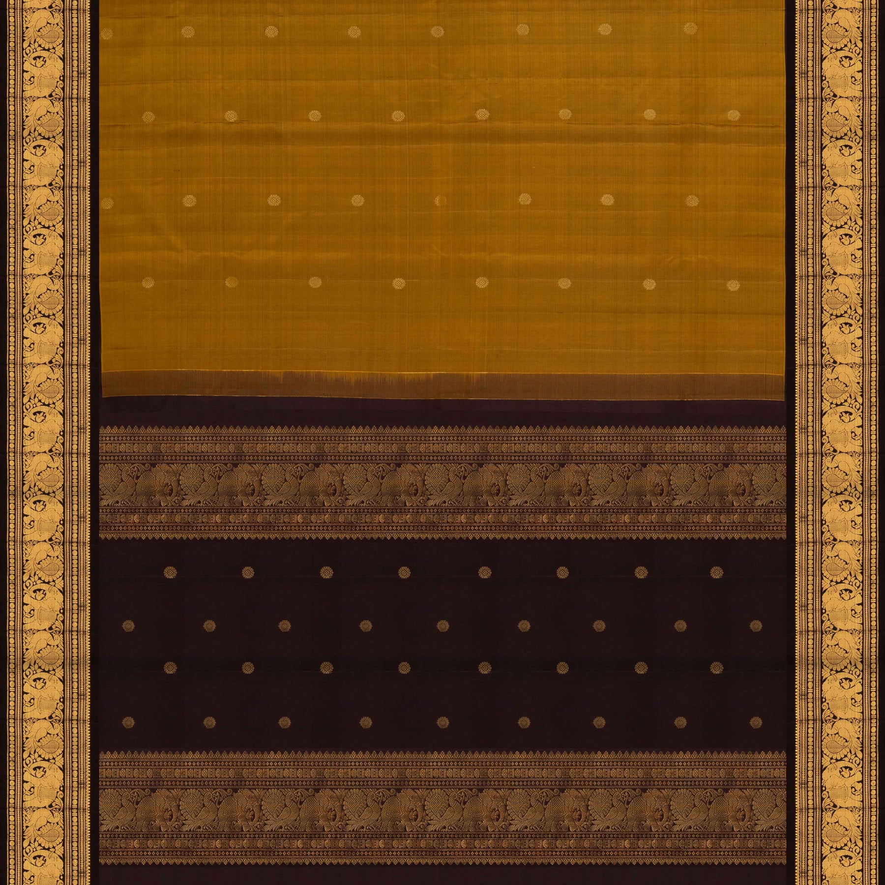 Handwoven Moss brown and deep brown Kanjivaram silk Saree- 3205T015475DSC