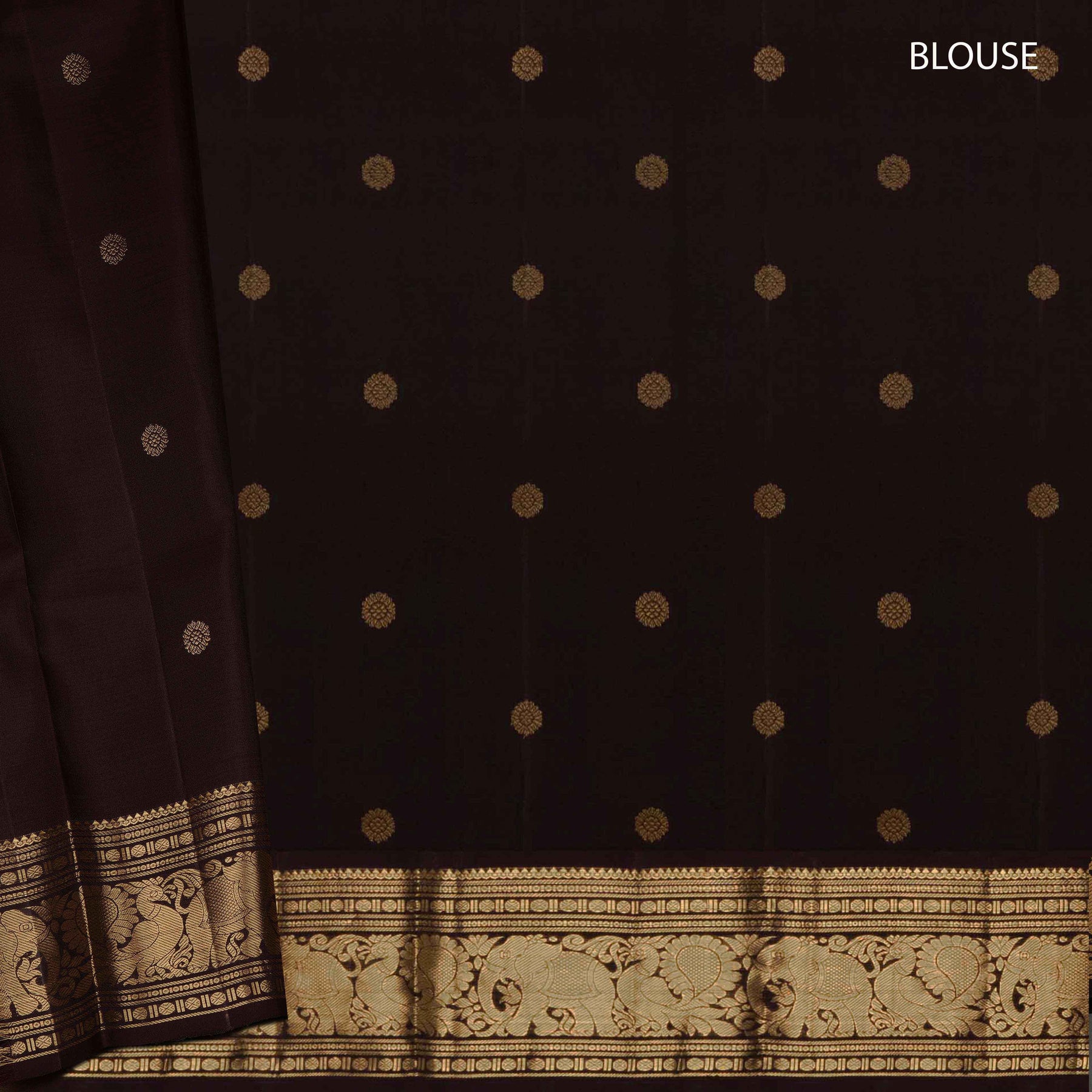 Blouse: Chocolate brown with floral buttas and zari border