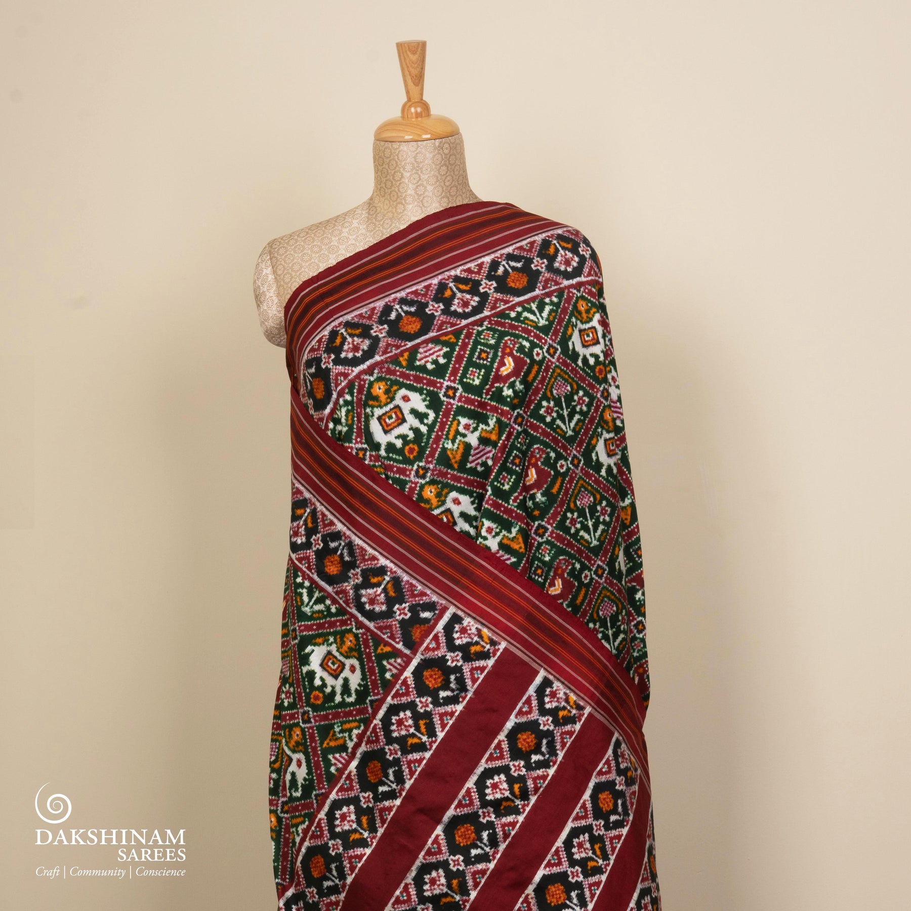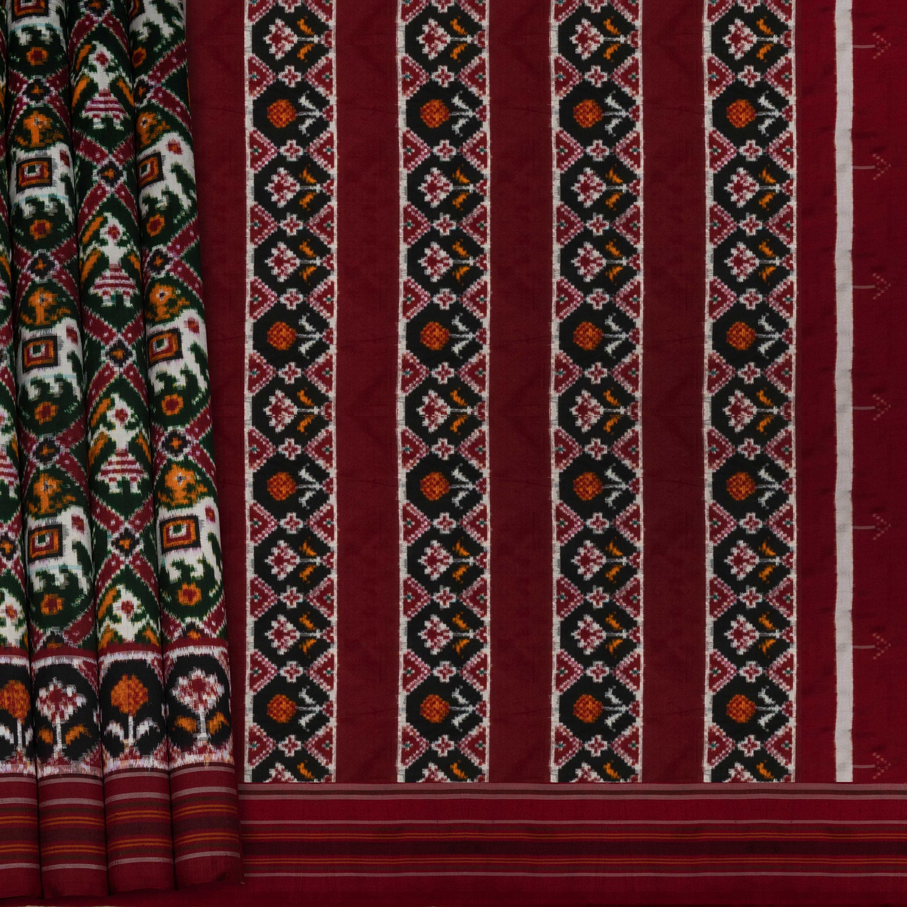 Note: Slight colour variations may occur due to photography and screen settings. As this is a handwoven double ikat saree, minor irregularities are natural and add to its authentic charm.