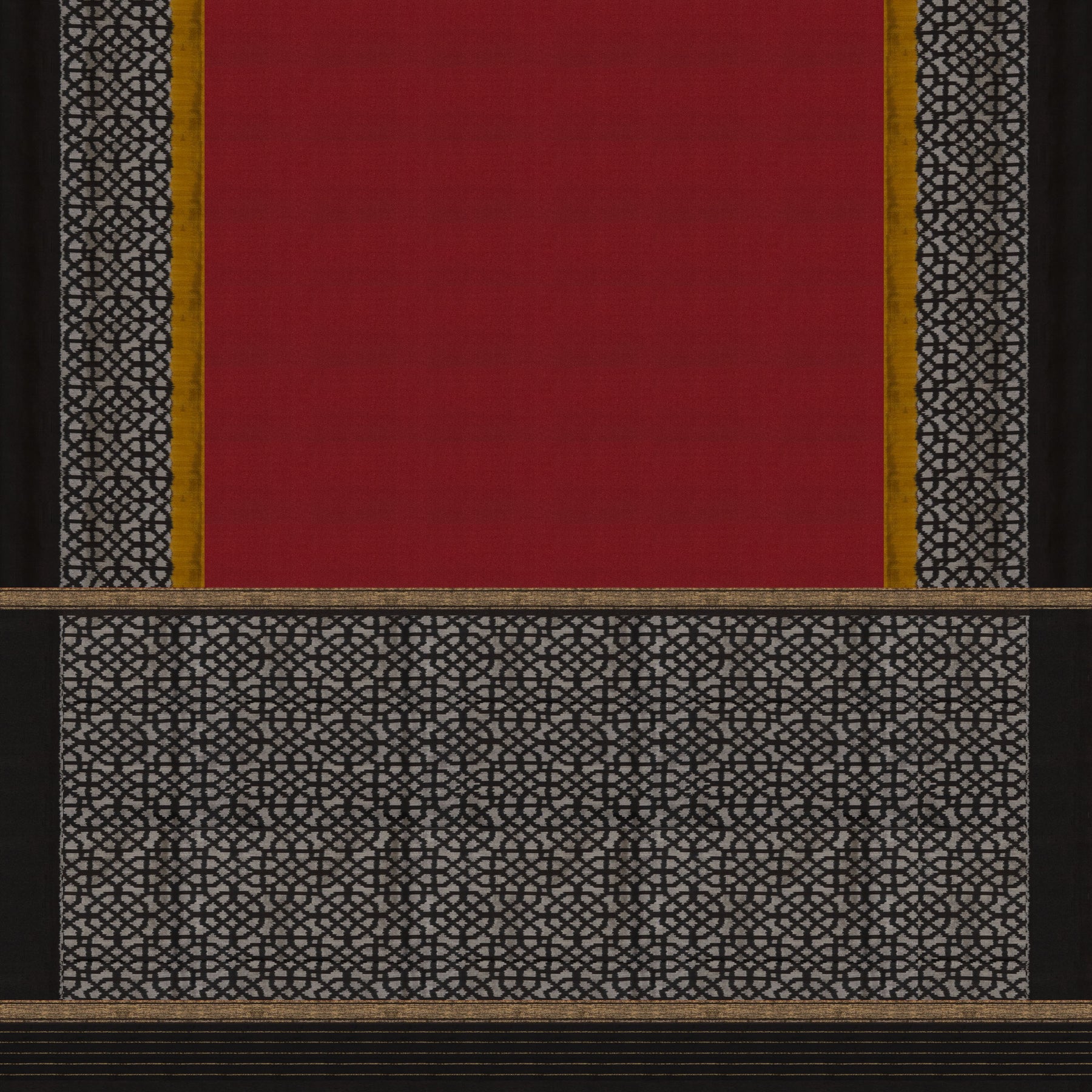 Red Pochampally Ikat Silk Saree with Black & White Pallu 3408T016359DSC
