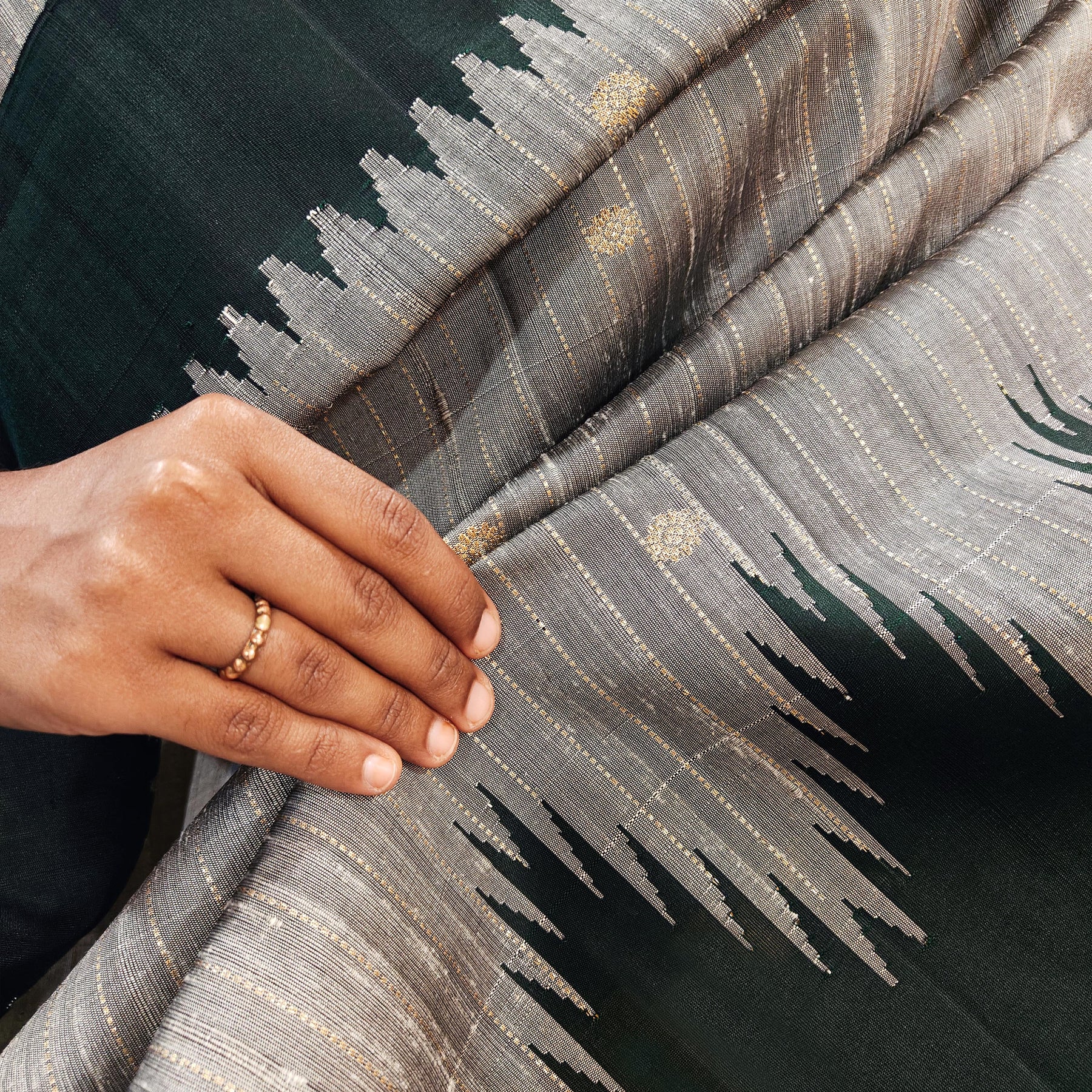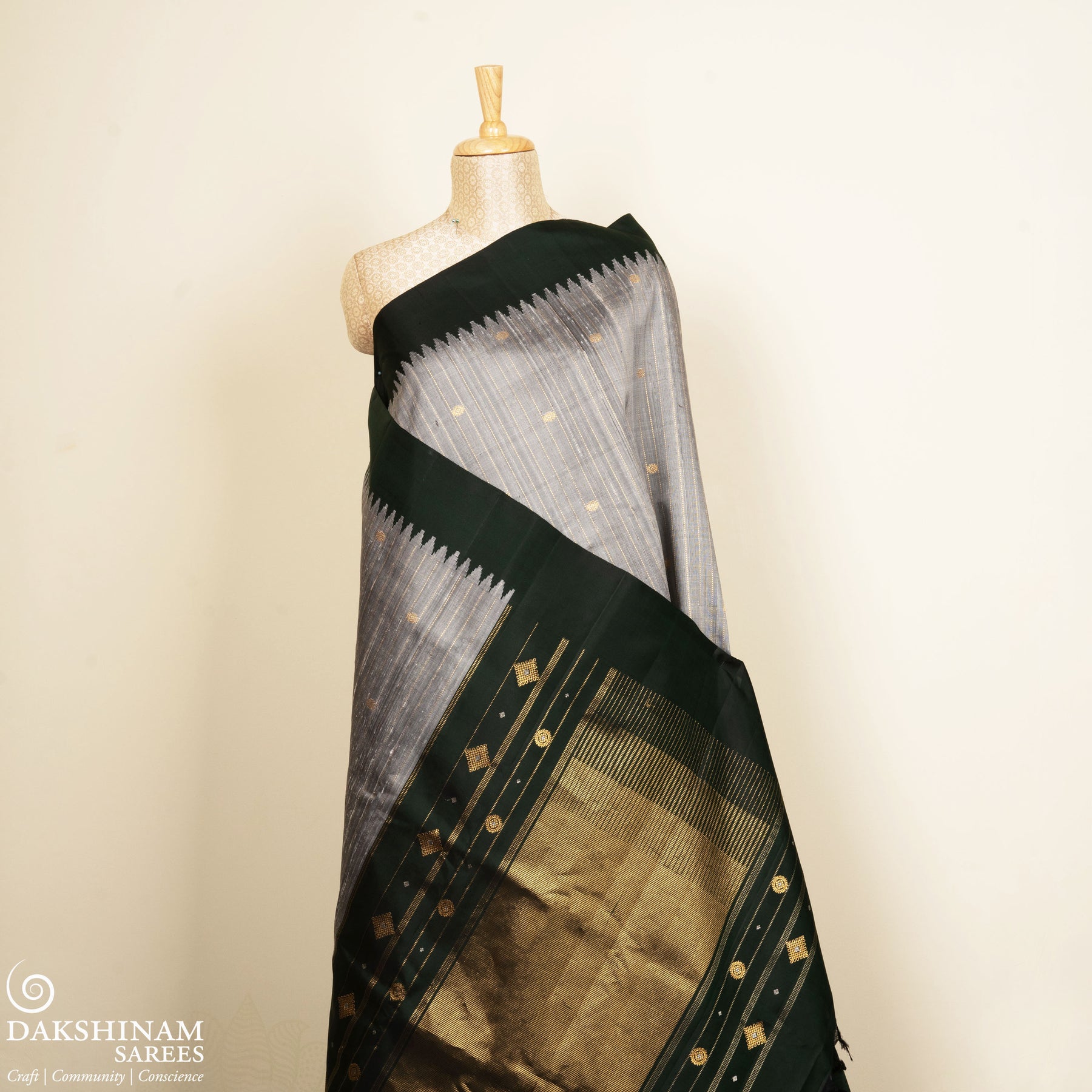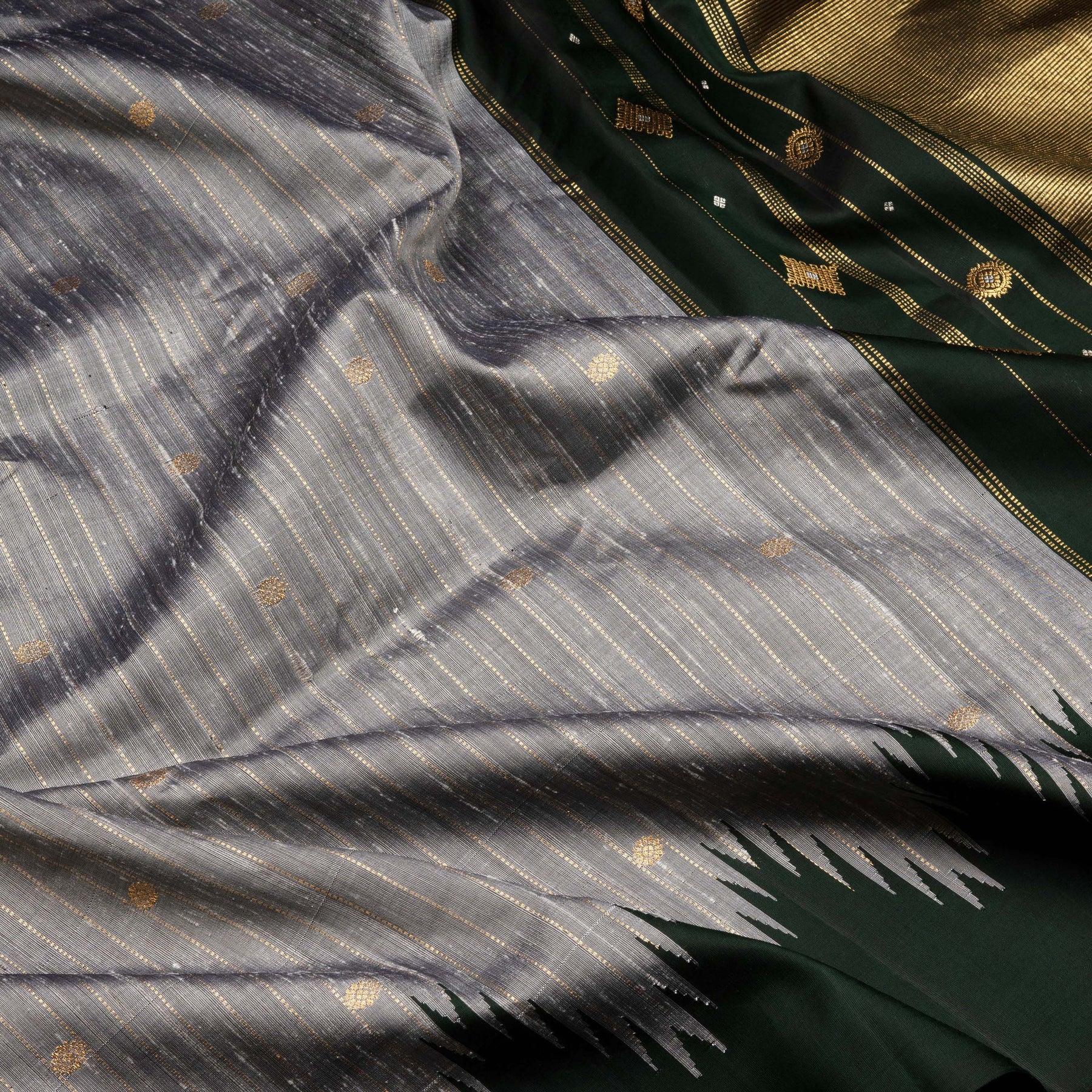 Grey Gadwal Silk Saree with Bottle Green Border and Zari Stripes 3334T016187DSC