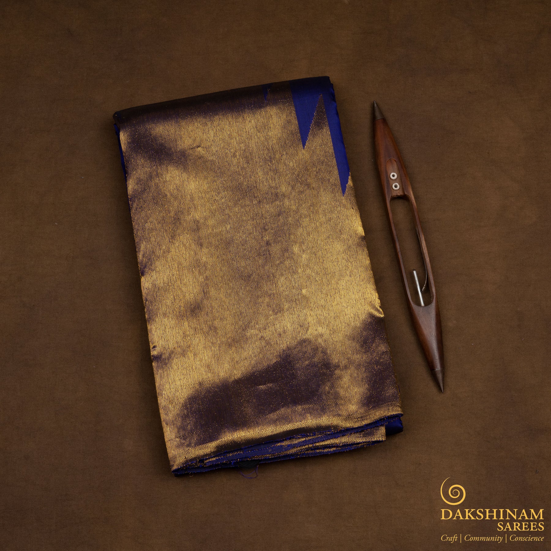 Blouse of Handwoven Navy blue temple Kanjivaram silk Saree