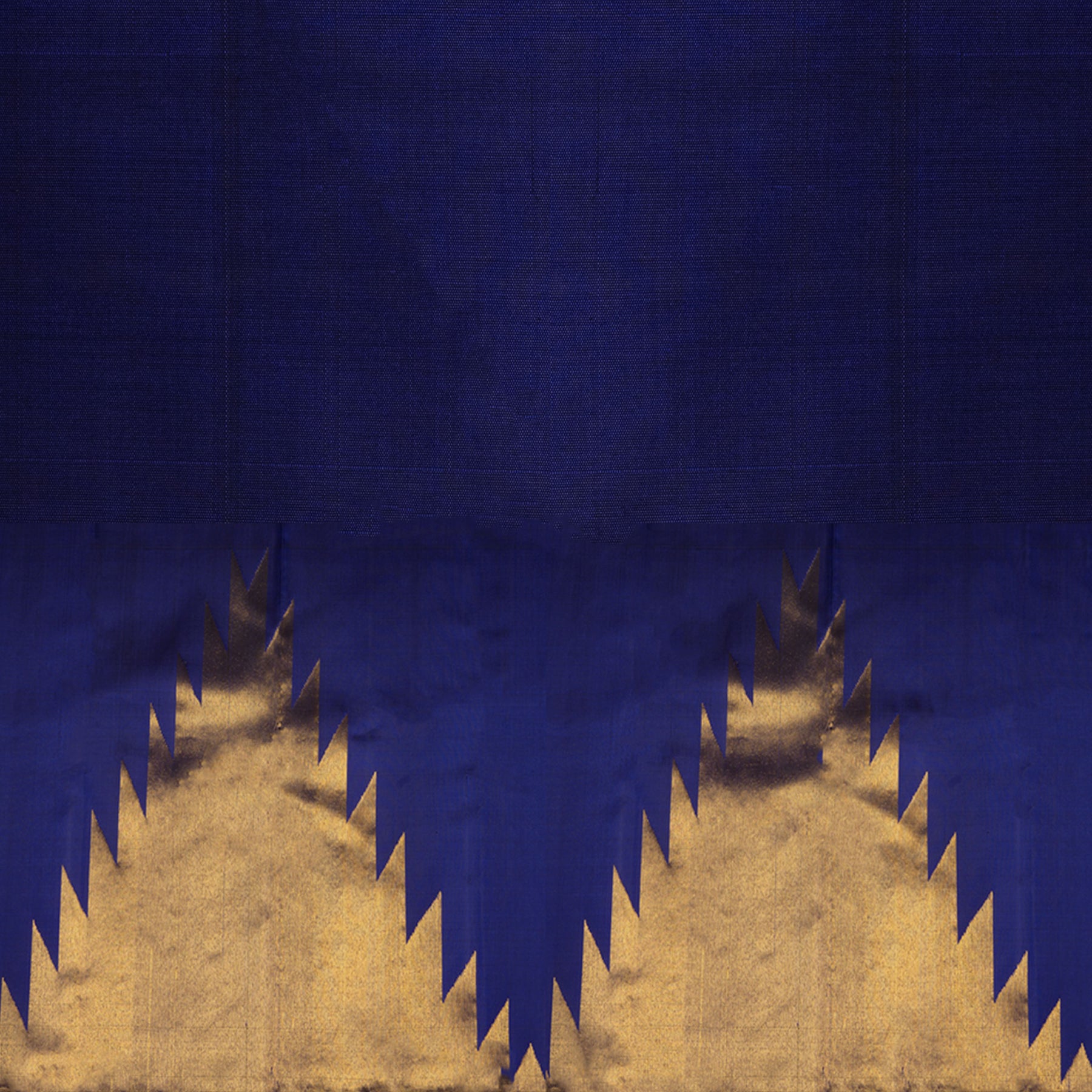 Closeup of Handwoven Navy blue temple Kanjivaram silk Saree