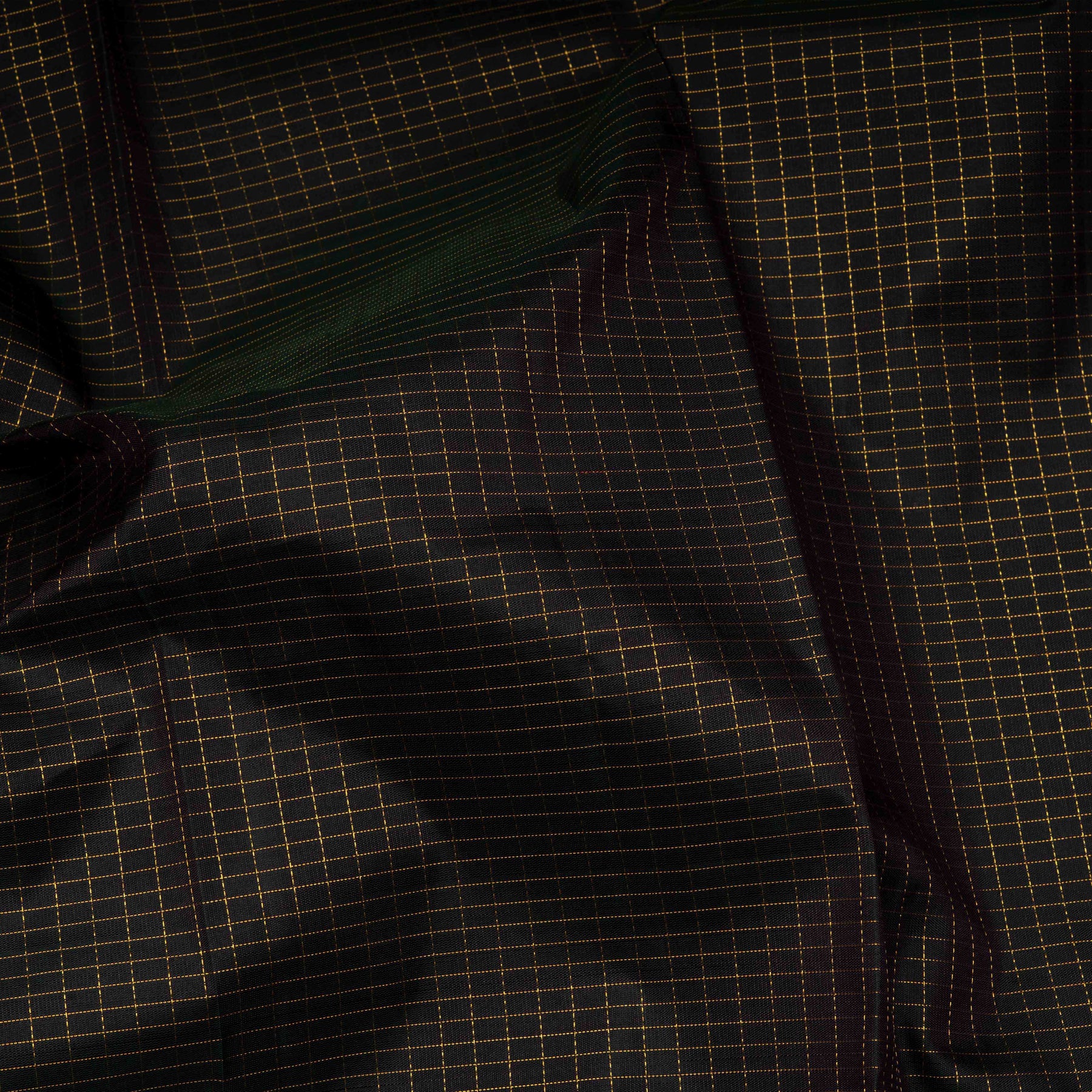 Closeup of Handwoven Checks & Stripes Kanjivaram silk saree in black and magenta color