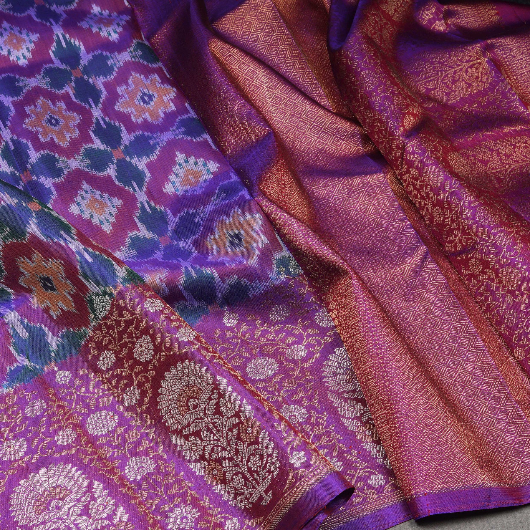 Handwoven Ikat Kanjivaram silk saree in purple color- 3306T015793DSC.
