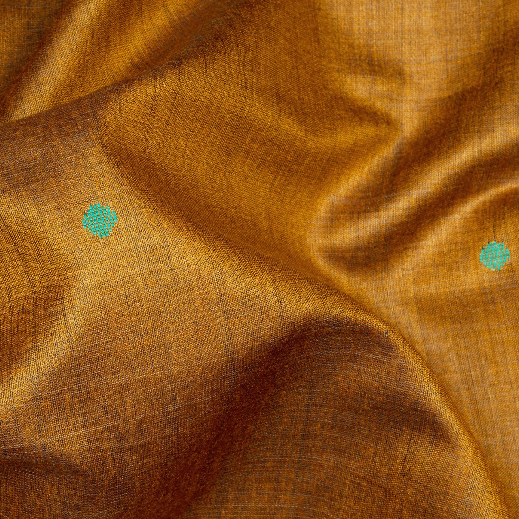 This elegant mustard tussar silk saree features a subtle dotted pattern across the body, enhanced with a rich gold zari border inspired by traditional Paithani design. The pallu is beautifully crafted with multicolor jamdani work featuring intricate bird and floral motifs, adding a vibrant and artistic touch. Lightweight yet luxurious, this saree is perfect for festive occasions and ethnic wear. It comes with a plain blouse finished with a matching border for a complete look.