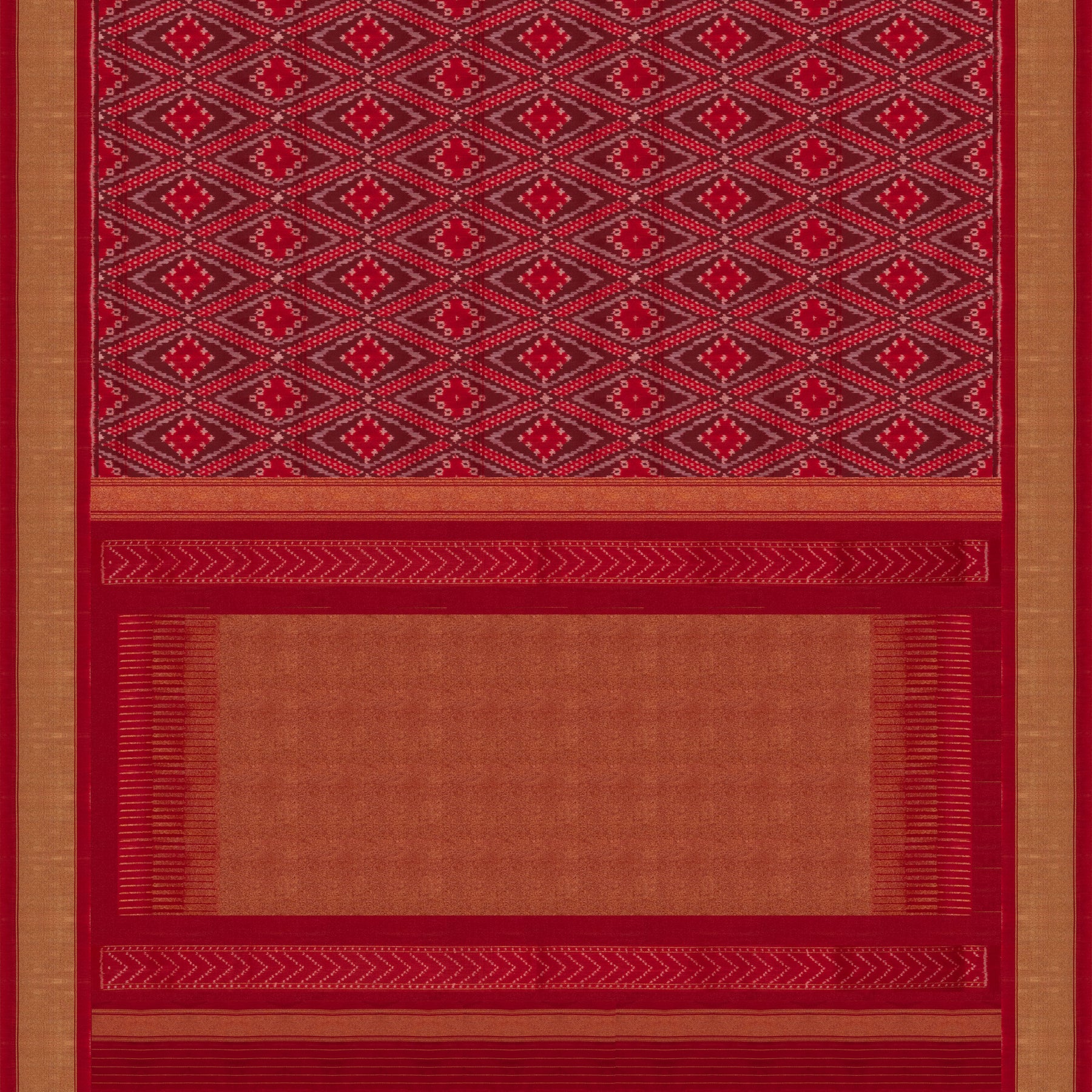 Red Pochampally Ikat Silk Saree with Gold Zari Temple Pallu 3409T016360DSC