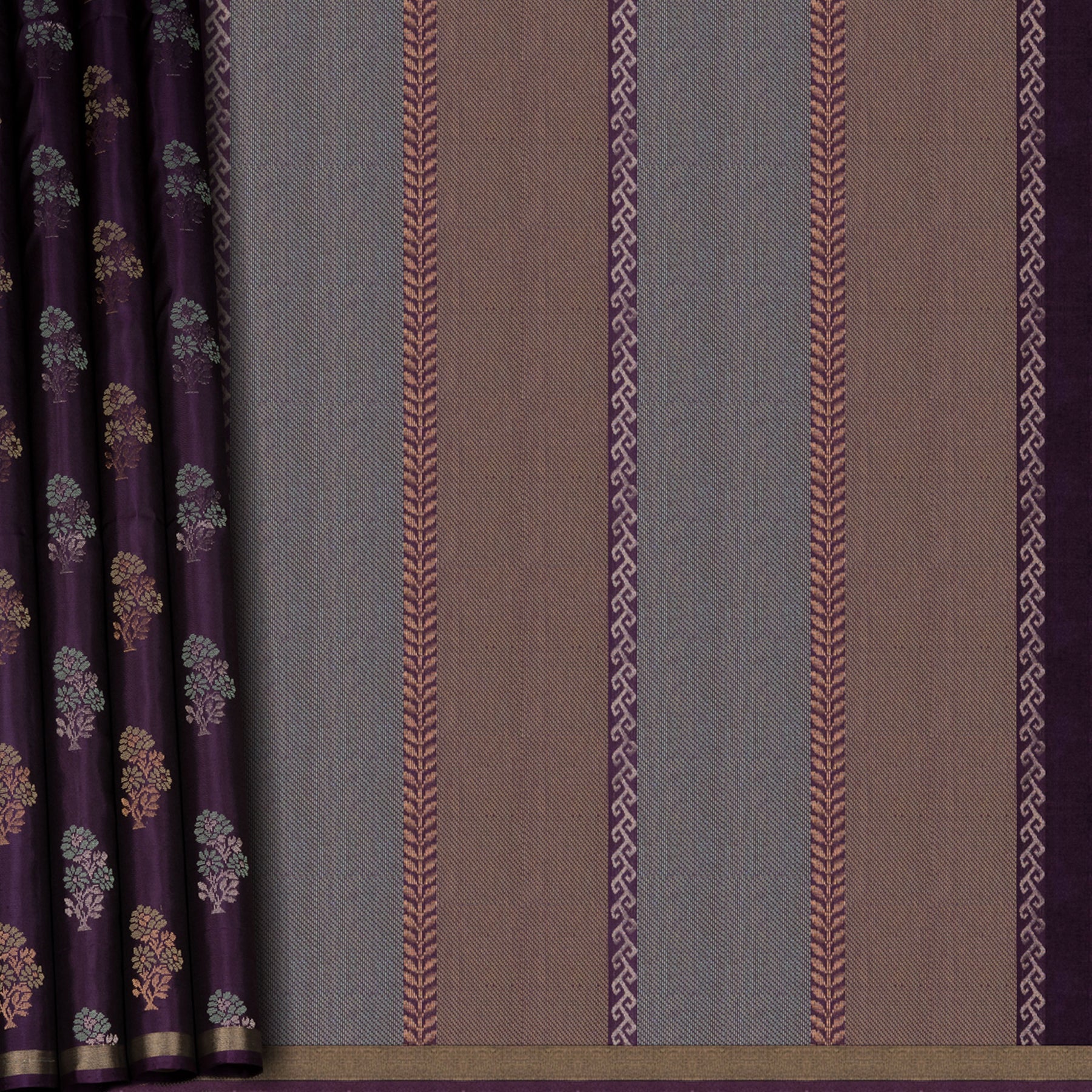 Violet Soft Silk Saree with Green Panel Pallu 3391T016272DSC